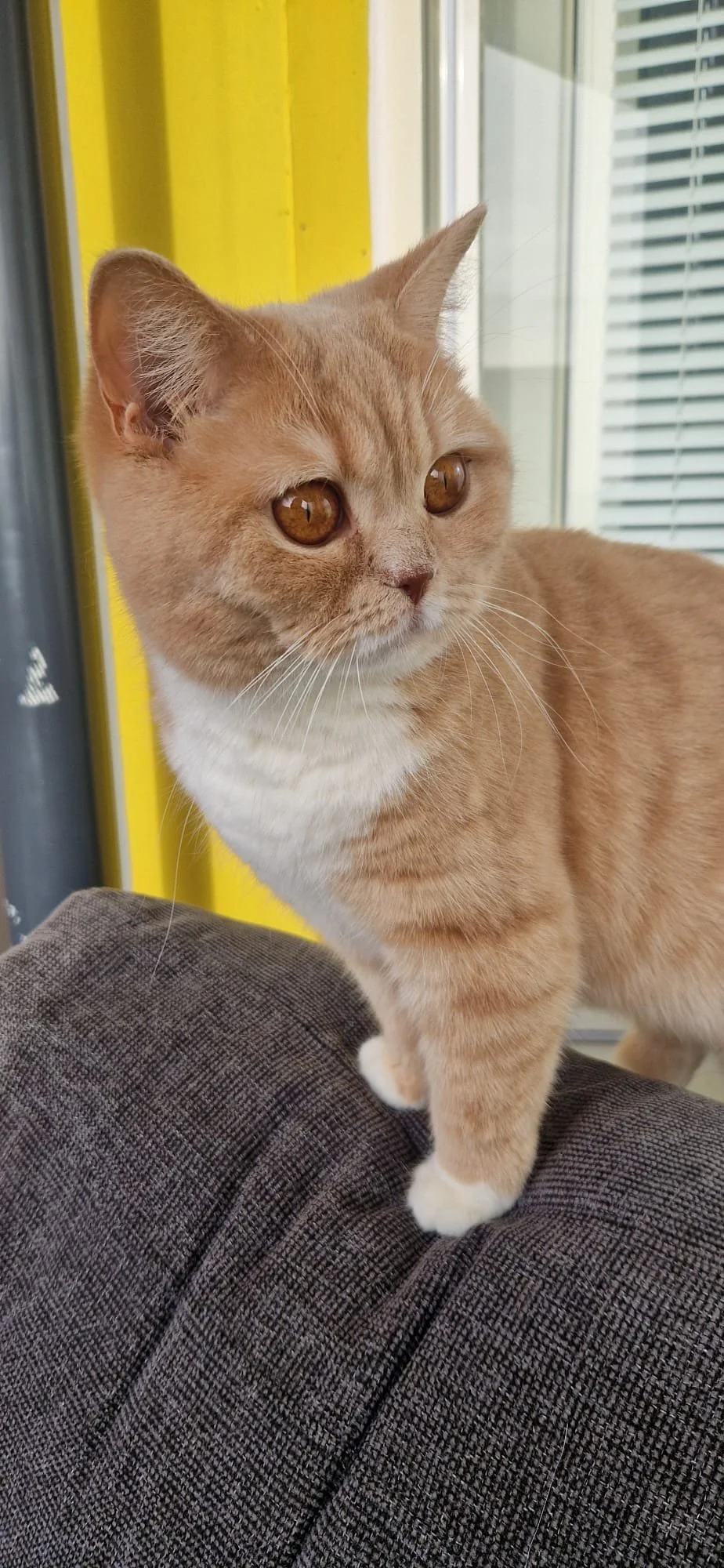 While Ginny likes her own space, she will let us cuddle her in her own terms. She loves the company of other cats, though she is calm but playful, she couln´t care about humans. Loves treats, tolerates people.